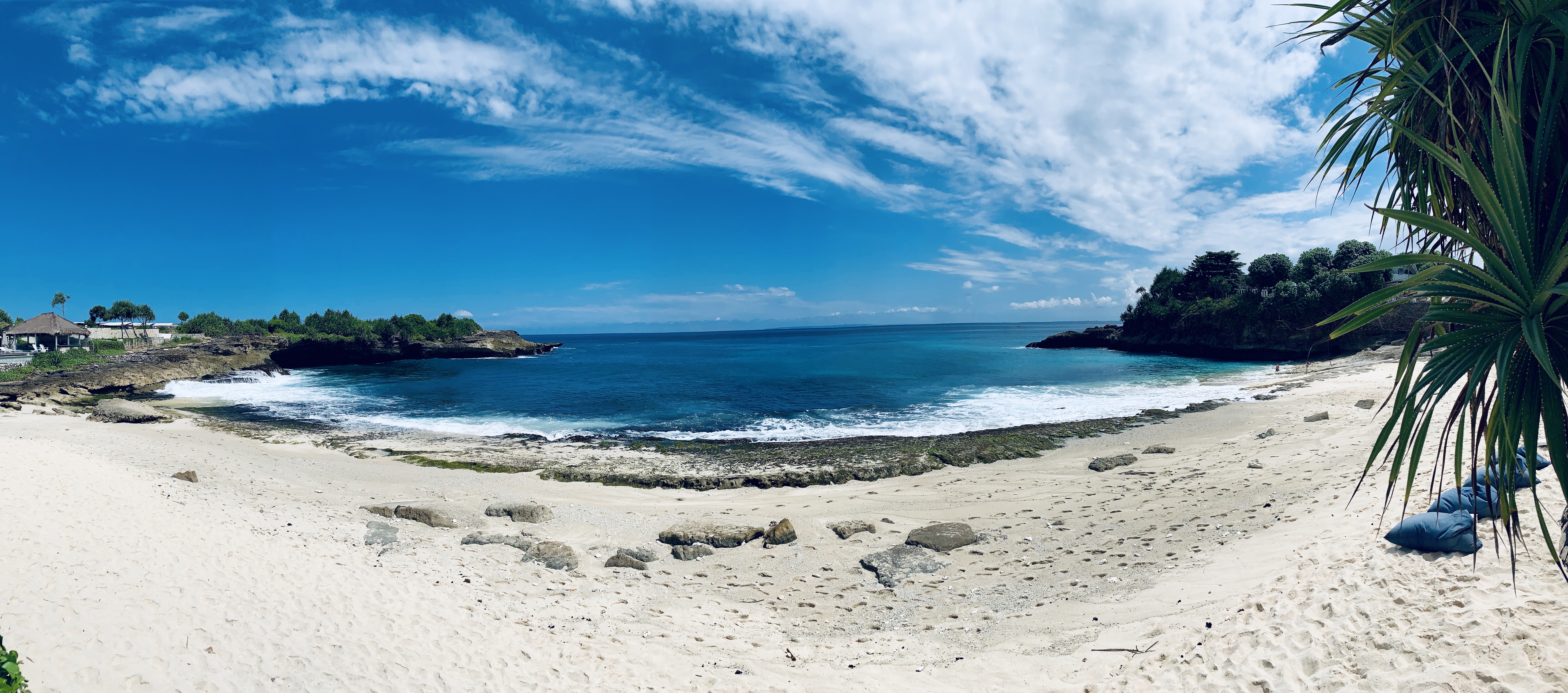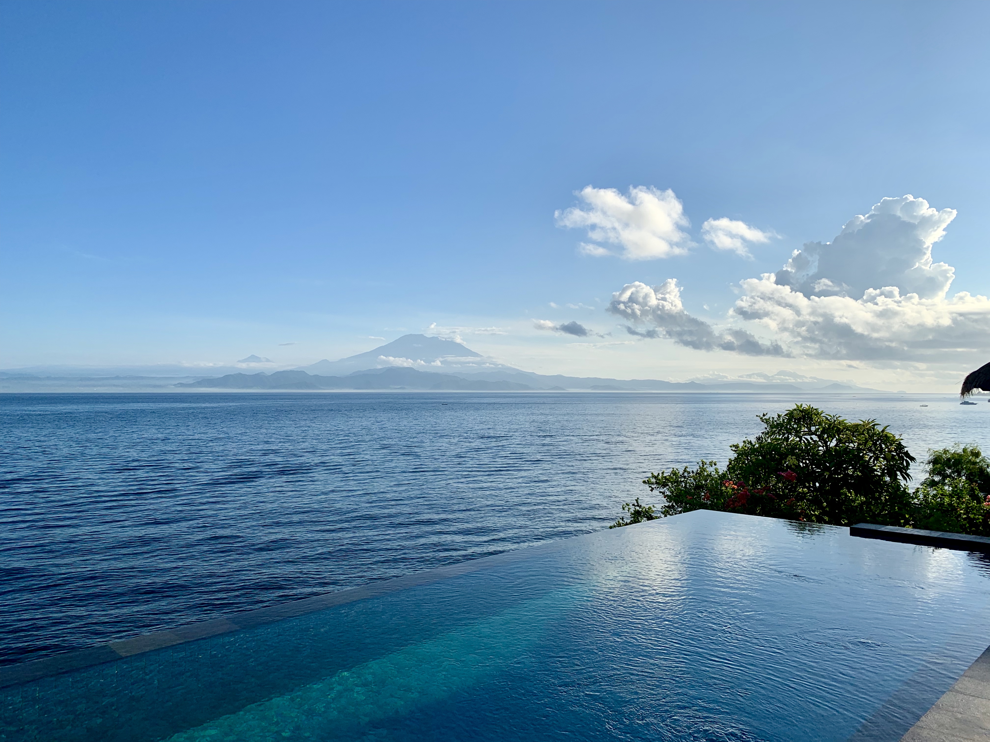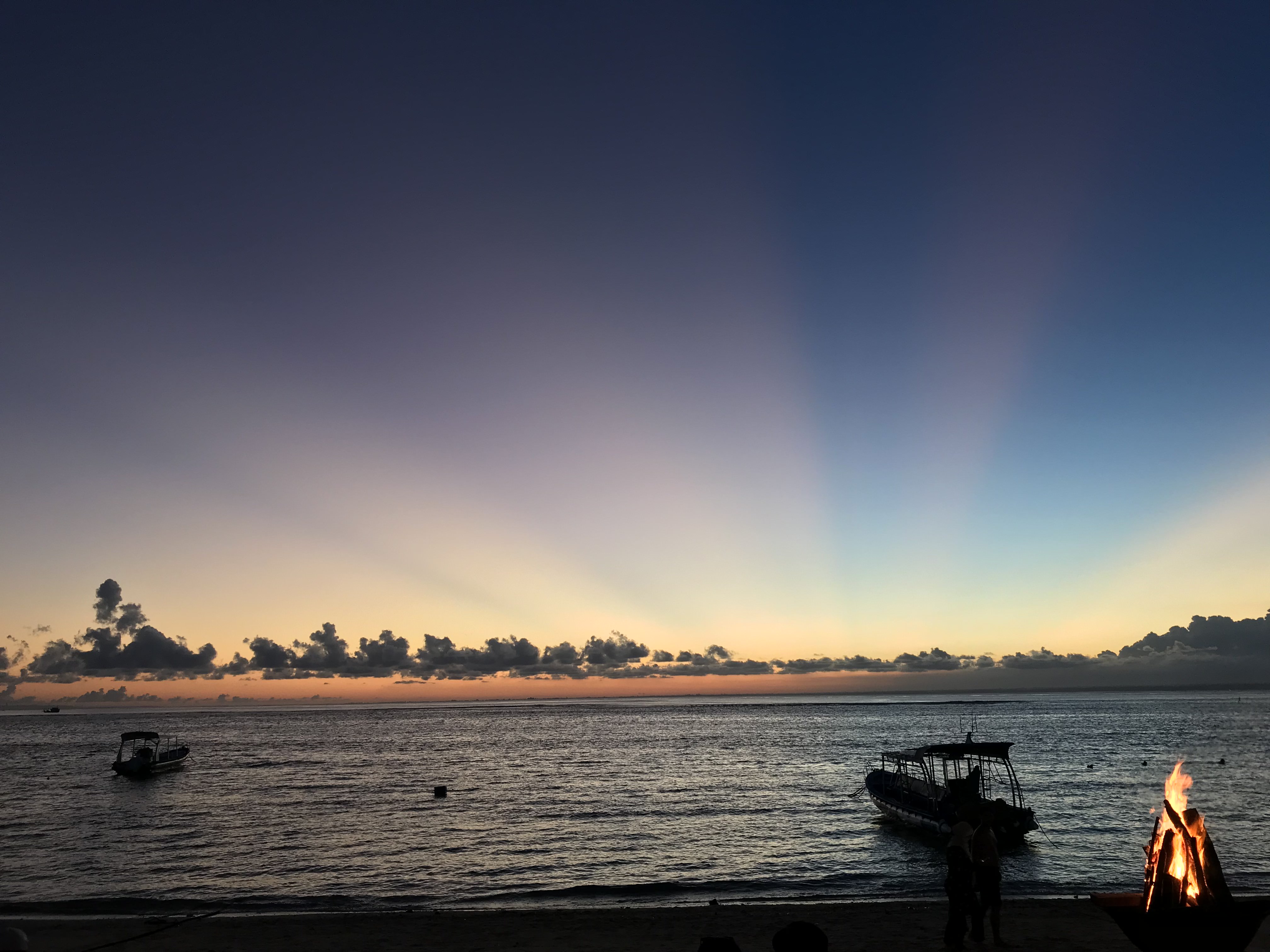 This is a super small, simple hotel but a beautiful location, its infinity pool looks out over the ocean with a fantastic view of the volcanos of Bali. It was an overcast day so we headed into town to explore, and a short 10min walk down the hill brought us to Mushroom Beach, a nice little spot with lots of cute places to eat but not great for swimming as there are a lot of boats. We decided to plough on to the next beach Jungutbatu, although we weren’t sure exactly how far it was. The vast majority of people use scooters to get around but it just seemed far too dangerous to me so we decided to walk, this was a mistake. We arrived at the The Deck 45 mins later and very sweaty, only to learn the most of the bars and restaurants will pick you up and drop you off FOC, everydays a school day. This was a great little bar looking up the beach and we settled in for a bottle of fizz and some dinner, perfect. We then walked to the far end of the beach to Ohanas which is a beach club and restaurant and really nicely done so we settled on a couple of beanbags and watched the beach bonfire crackle just as sun was setting, thankfully they gave us a lift home.
