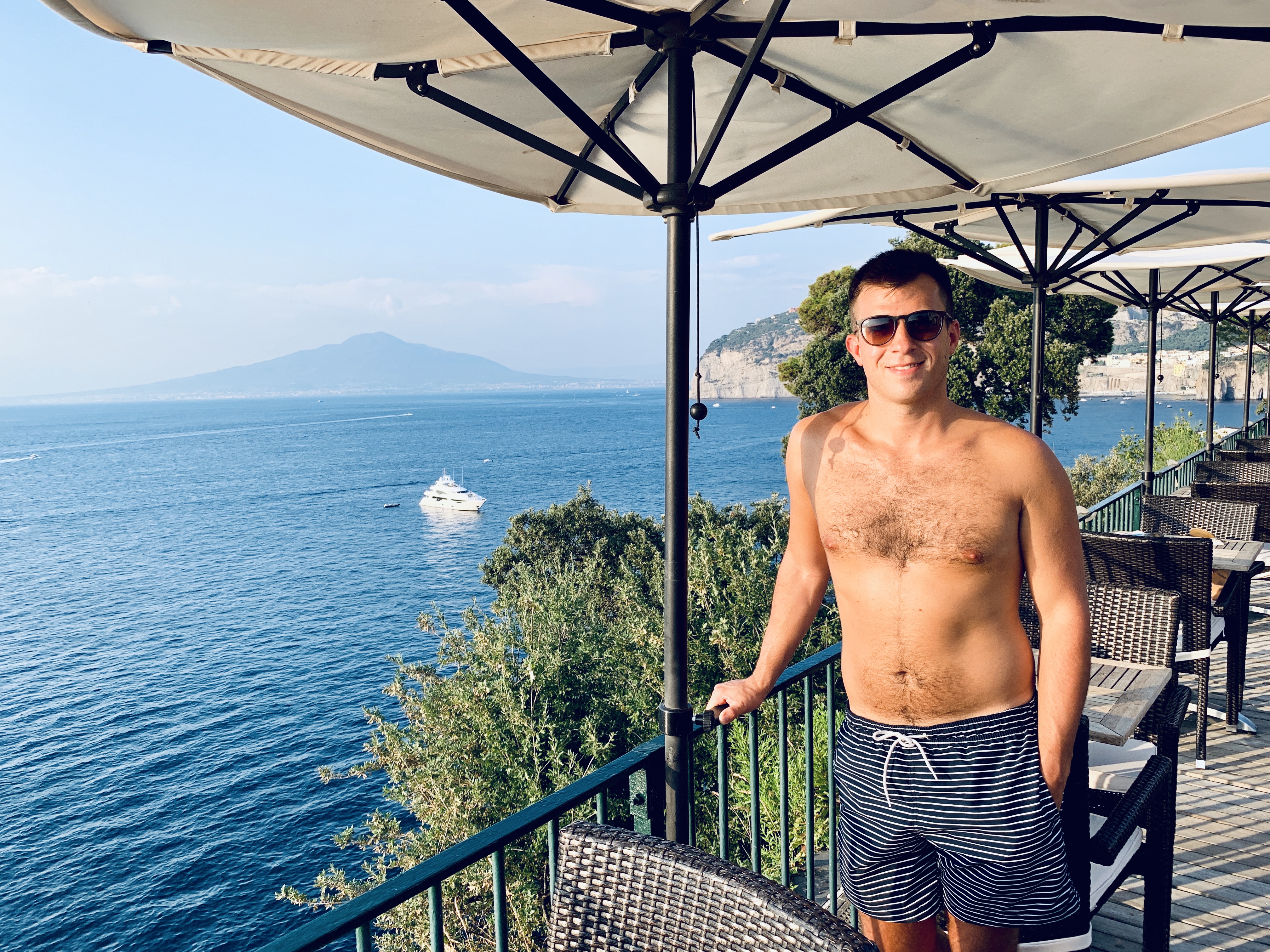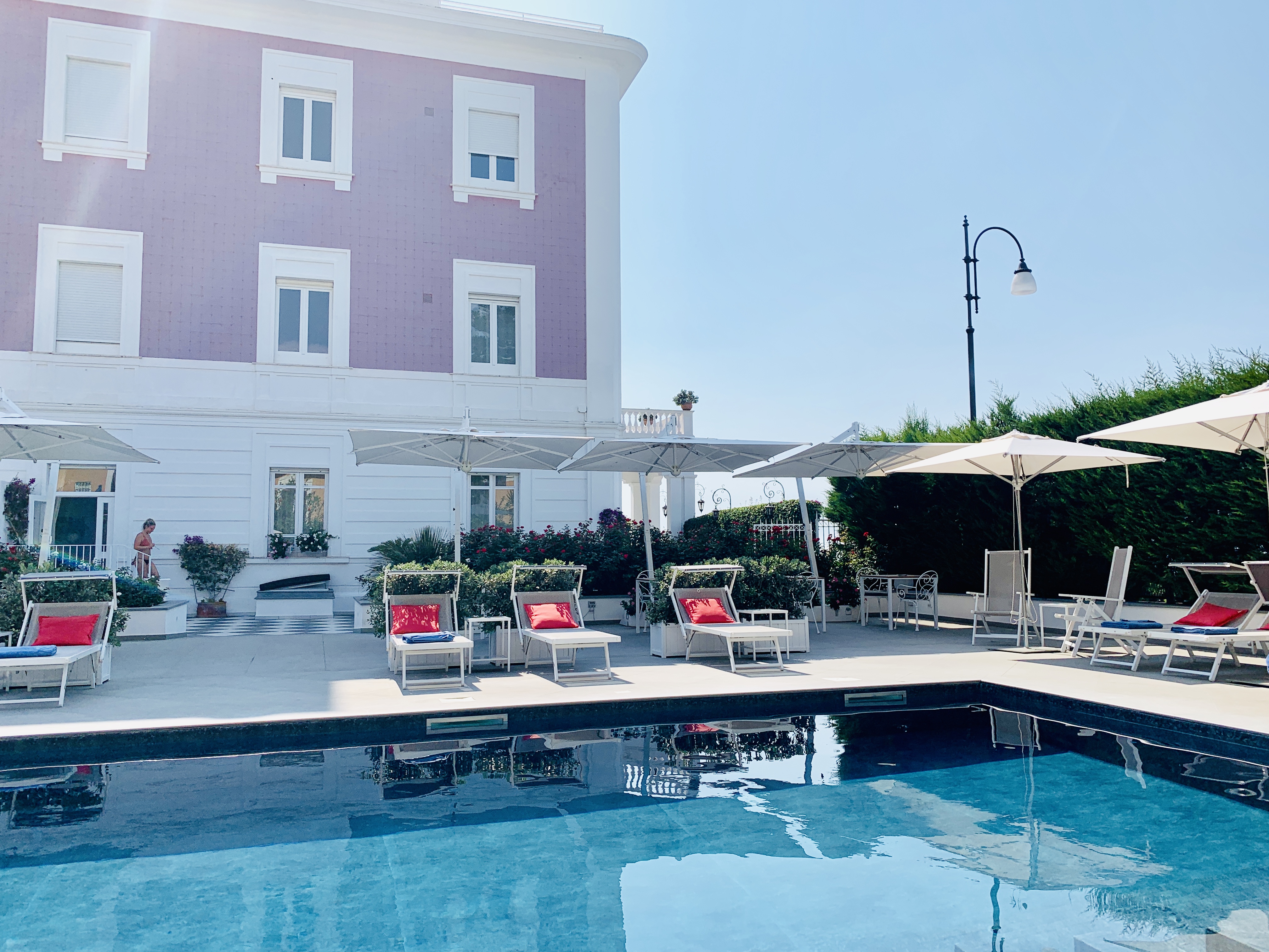 This is a small boutique hotel which as the name suggests used to be a classic Italian villa and it’s perched right on the cliff for a gorgeous view out to sea, and back up to Naples and Mount Vesuvius. We were quick to dump our bags and head straight for the lovely pool area and of course an Aperol spritz or two in the glorious sunshine.