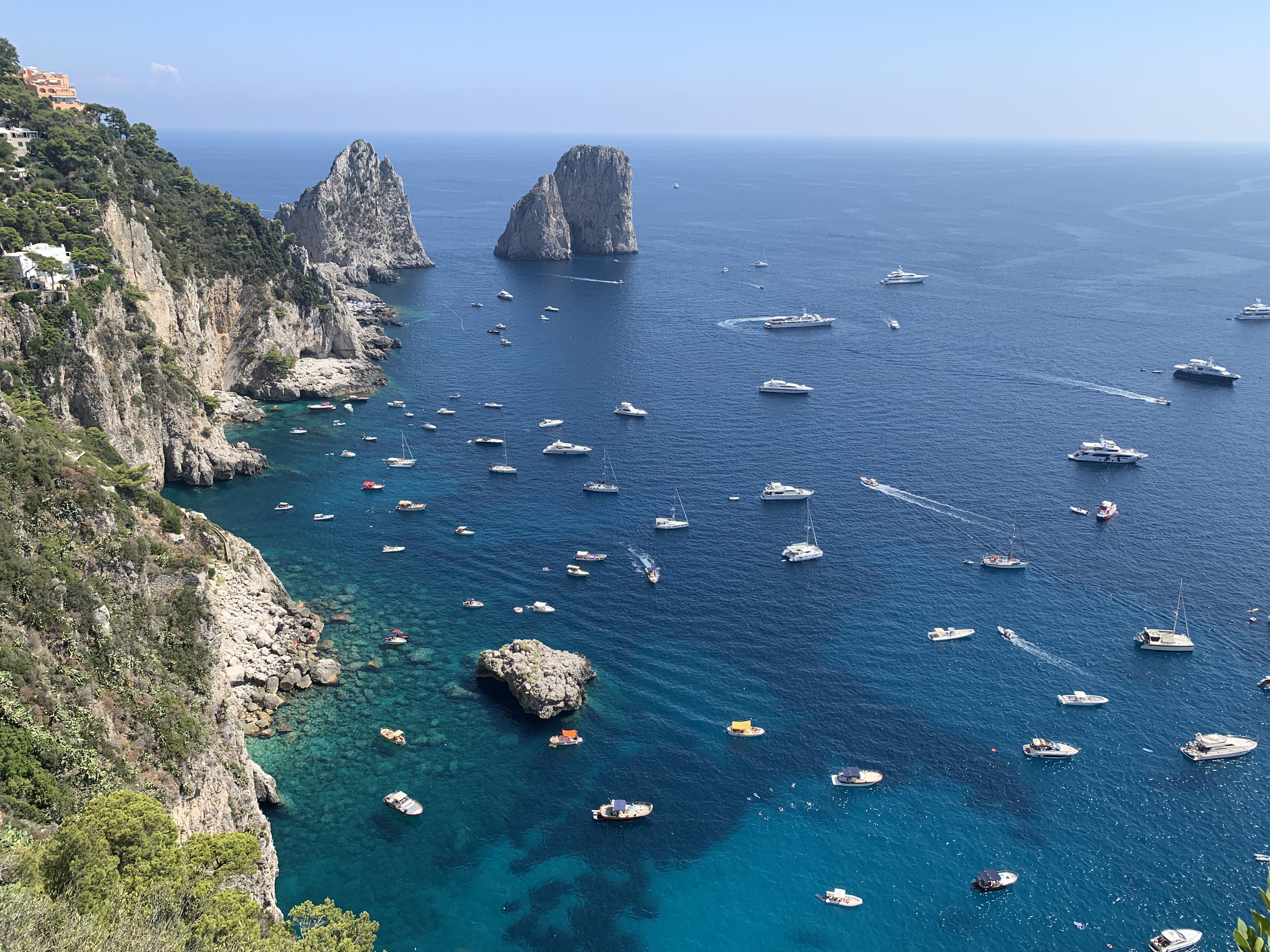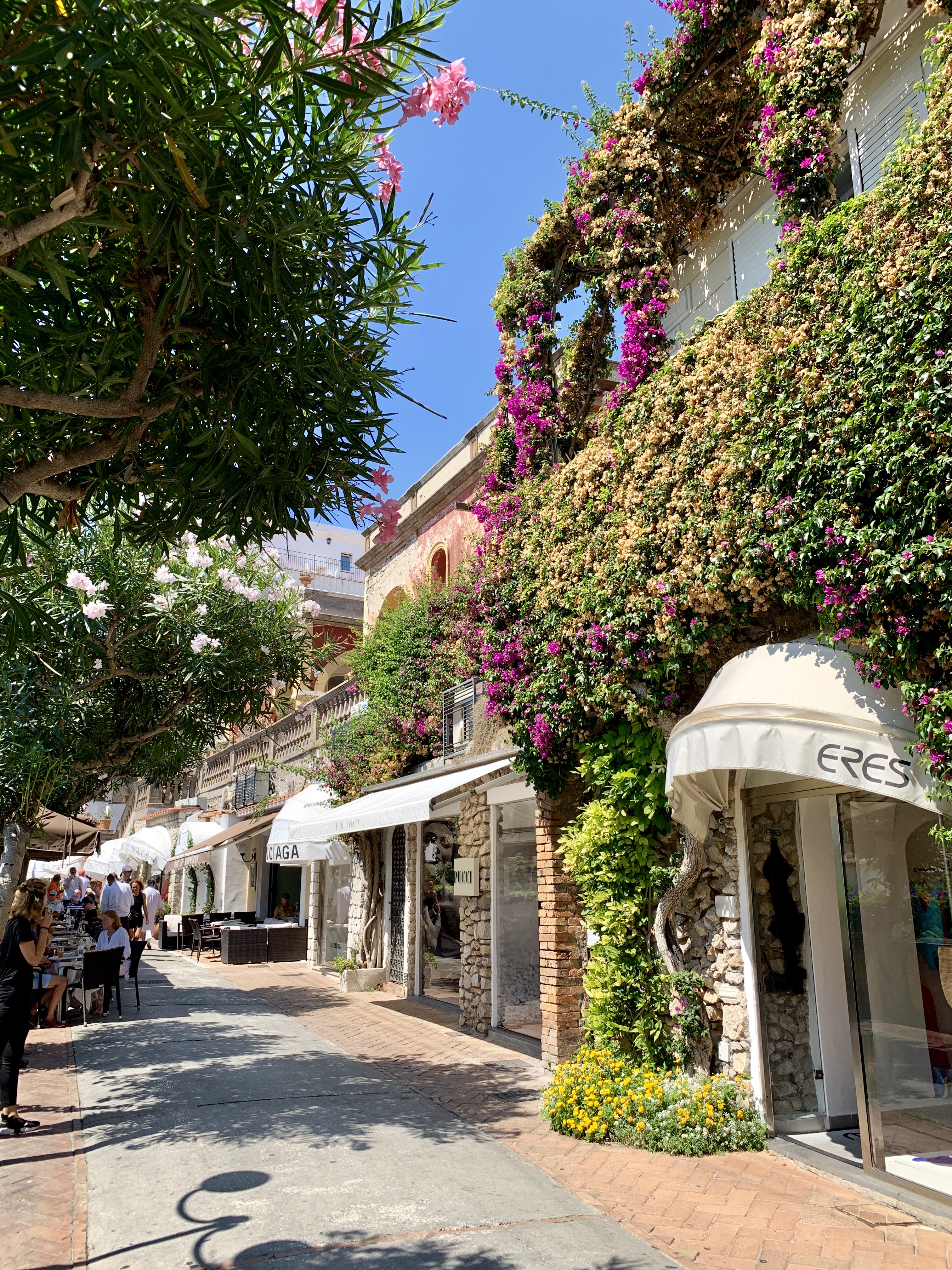 Up next was the island of Capri! A 25min ferry ride later we docked at the port and were instantly swamped by tourists and sales pitches for boat trips. The most famous attraction is the Blue Grotto, a cave in which the sunlight refracts beautifully through the water but I’d read that although this may be quite the sight, perhaps not worth the time spent queuing. Instead we headed straight for the funicular and up to Capri Town. After an iced coffee in the square watching the beautiful people go out their business we grabbed a gelato and started to wander. This place is so beautiful, designer shops galore but everything is just so picturesque. We walked to the other side of the town to visit the Gardens of Augustus but unfortunately a lack of cash meant a quick (and sweaty!) dash back to the ATM for Dan! Worth it as the view from here is truly spectacular.